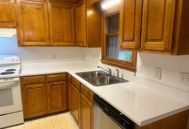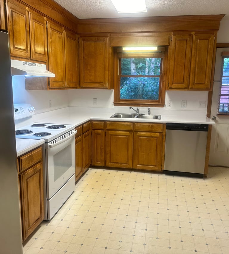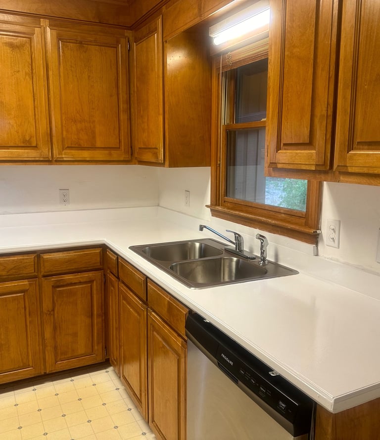 Kitchen is ready to serve, with new dishwasher, new sink.