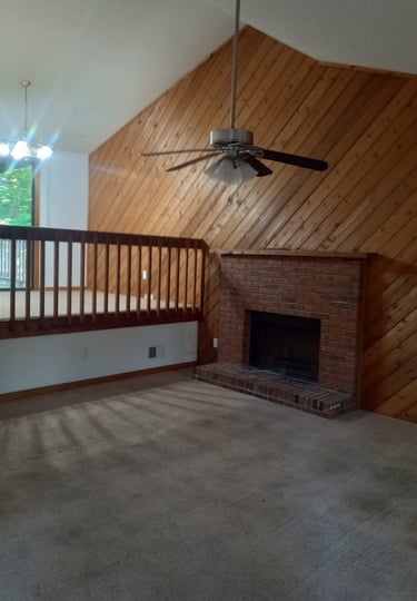 Enjoy the vaulted ceiling and warmth from the fireplace and skylights