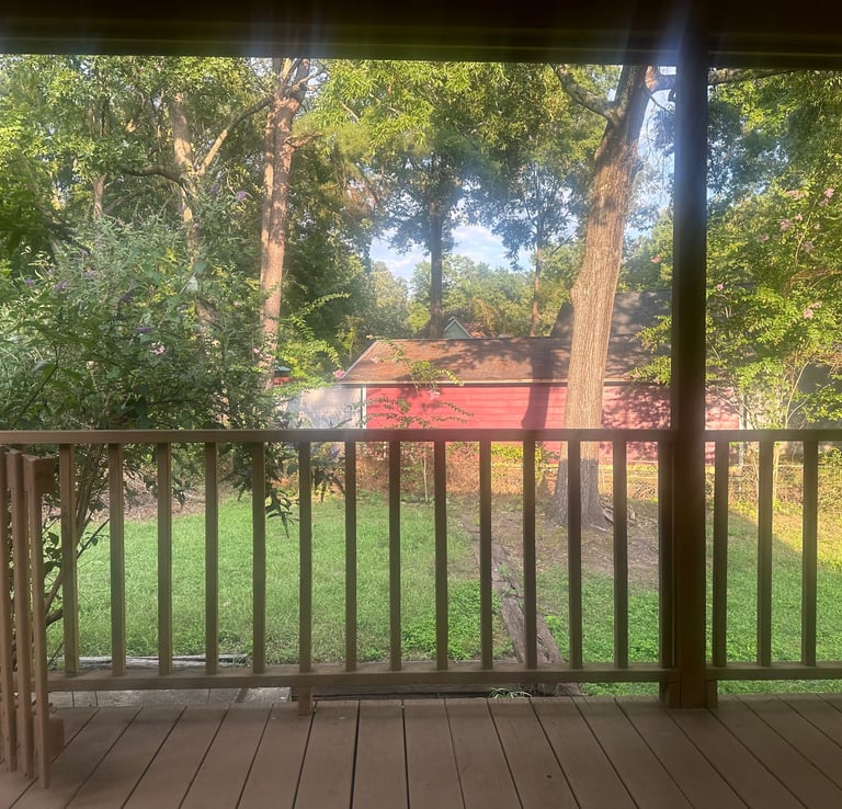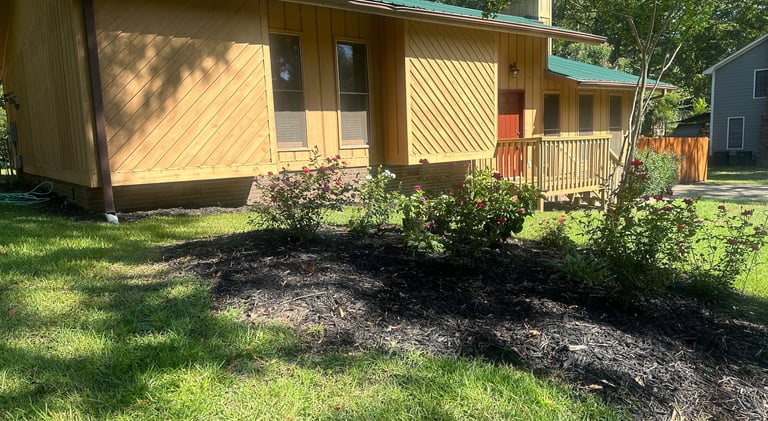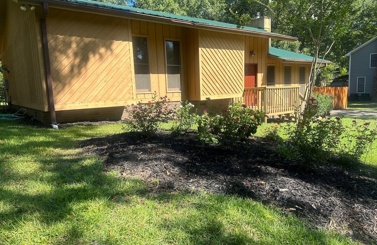 Many flower beds ready for your plants with rich ariable soil in front and behind the house. Already there are established Mexican petunias and a Rose garden in front. Back yard has a myriad of plants like crepe myrtles, japanese maple, and a butterfly bush with many pollenators in spring summer and Fall.